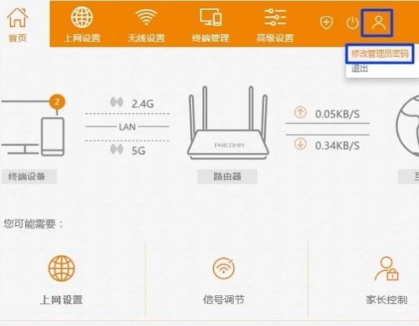如果你还需要修改管理员密码的话点击右上方的一个管理员图标;然后一次打开修改管理员密码;并在修改管理员密码输入框中重新输入你的管理员密码。